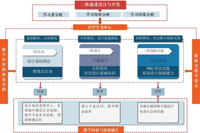 为培养园林专业人才的实践操作能力和创新设计思维,以该专业三大构成(平面构成、色彩构成和立体构成)课程为例,以高阶设计能力为导向,对人才培养创新途径进行分析,并对其具体实施成效进行探讨。创新途径包括转变教学思维,激发学生学习动机;实施校企协同育人模式,构建“认知模块、技能模块和实践模块”三大模块的教学内容;应用信息技术,构建数字化教学环境。创新改革的具体实施方面,在“三模块进阶式”混合学习模式下,通过基础认知模块、中阶设计技能模块和高阶实践教学模块,将教学内容与行业需求的系统流程相对应;搭建数字化教学平台,应用虚拟仿真软件增强沉浸式感知体验,运用信息媒体方式展示设计作品成果。教学改革实践表明,学生高阶设计能力明显增强,其竞争意识、设计水平和创作积极性均得到有效激发和提升;教学教研取得明显成效,实现了以培促教。为提升园林专业教学质量,培养既有深厚学术素养又具备实战能力的专业复合型人才提供参考。
