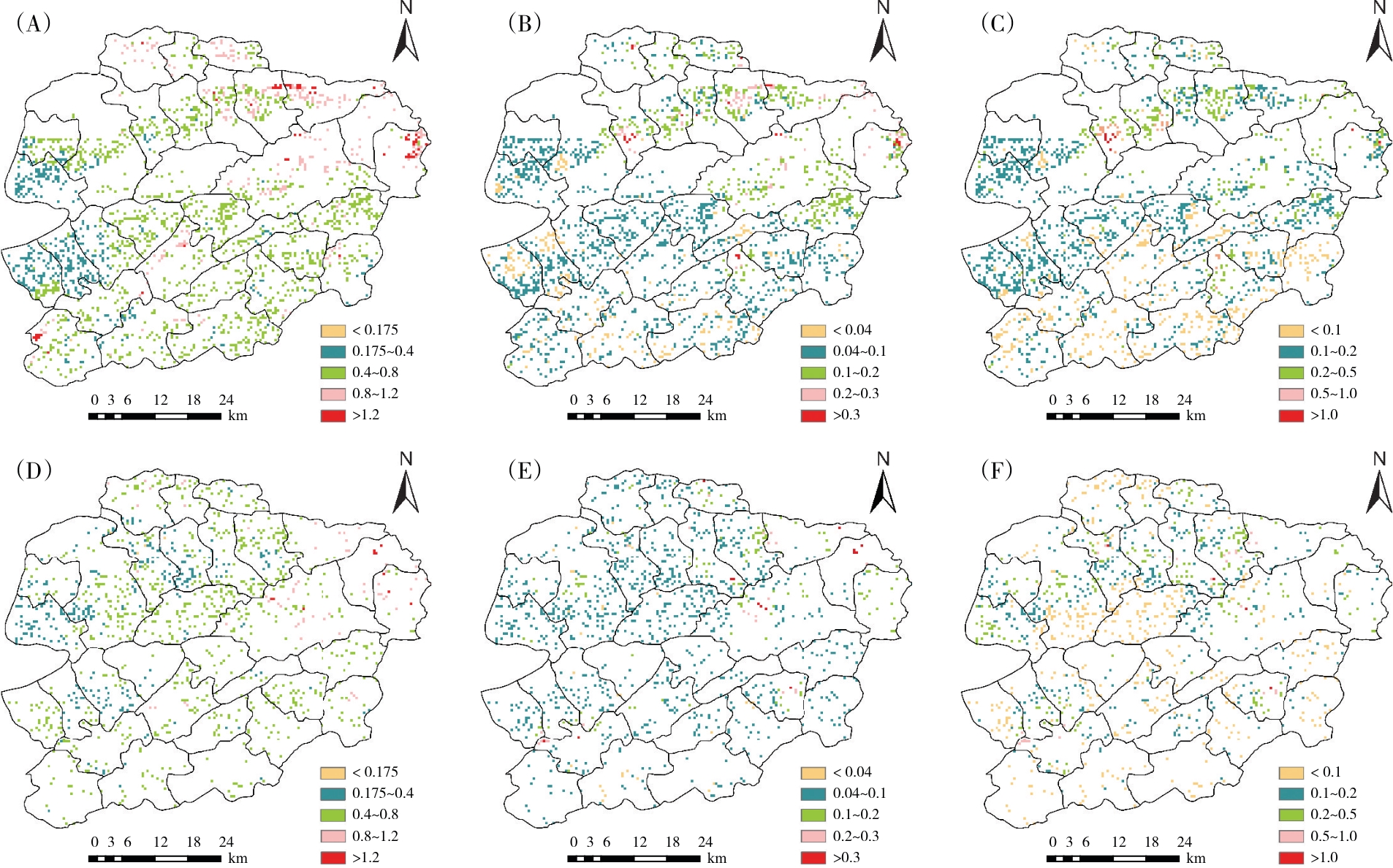 图5)。成土母质对土壤硒的空间变异产生了显著影响,且各成土母质发育的土壤硒含量均达到富硒水平。水田中,由第四纪红土、河湖冲沉积物发育的土壤中硒含量高于板页岩风化物、砂岩风化物、石灰岩风化物发育的土壤硒含量,差异具有统计学意义(