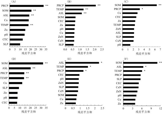 P<0.05),其余4种成土母质的富集因子之间差异均无统计学意义(