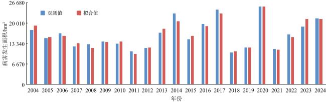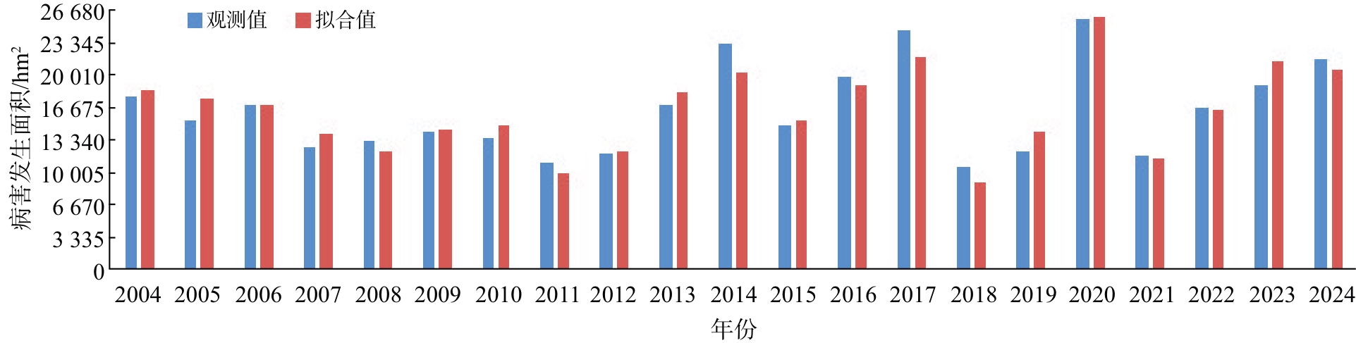 表1 2—4 月各气象因子与油菜病株率及病害发生面积的相关系数 |