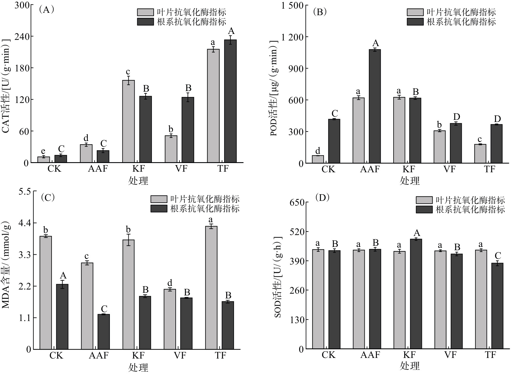1.4.3 叶片及根系抗氧化酶活性