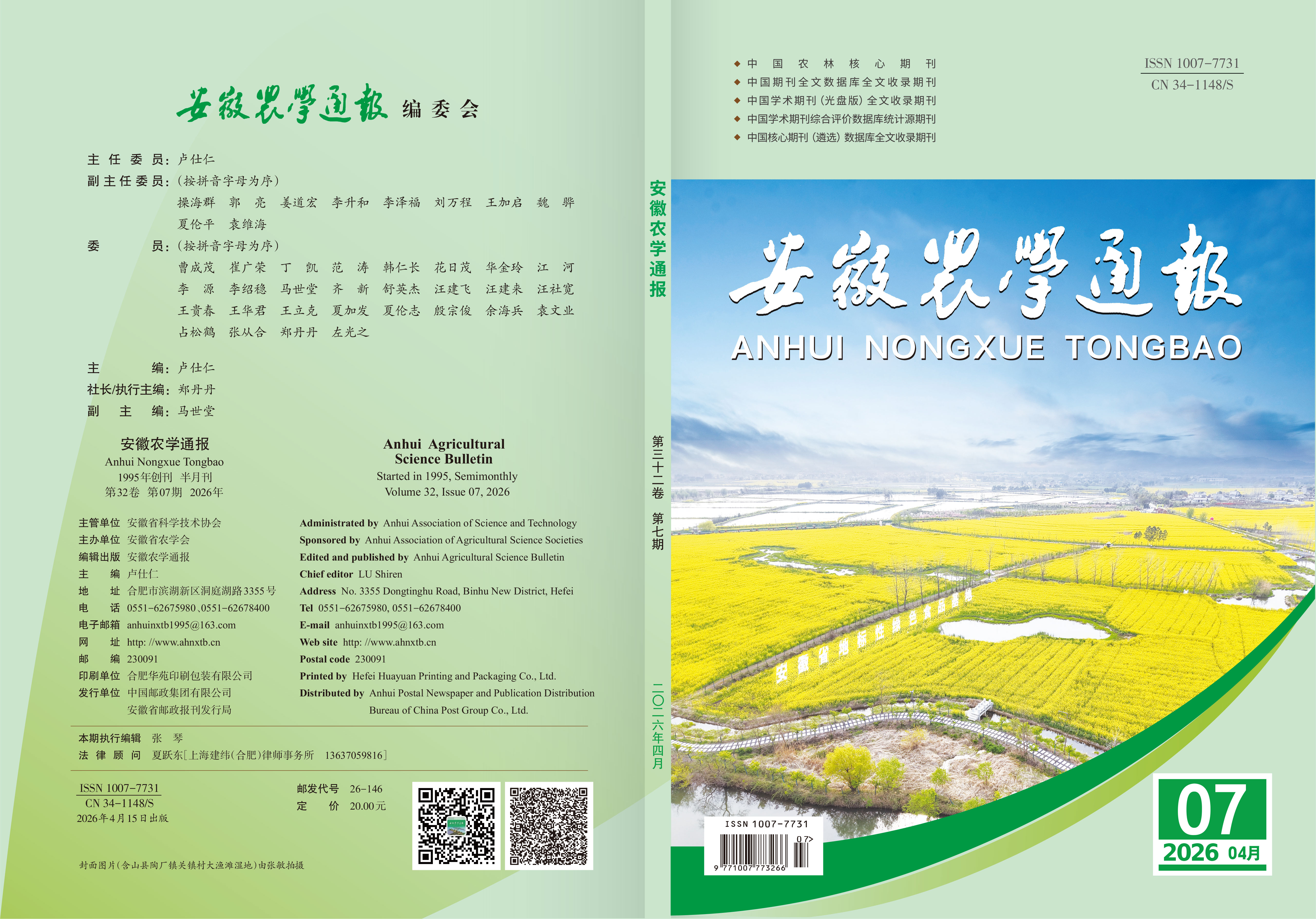 安徽农学通报. 2026, 32(7): 1-4. https://doi.org/10.16377/j.cnki.issn1007-7731.2026.07.001