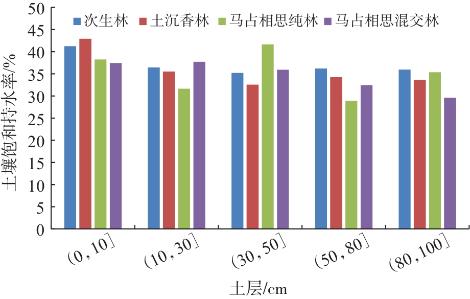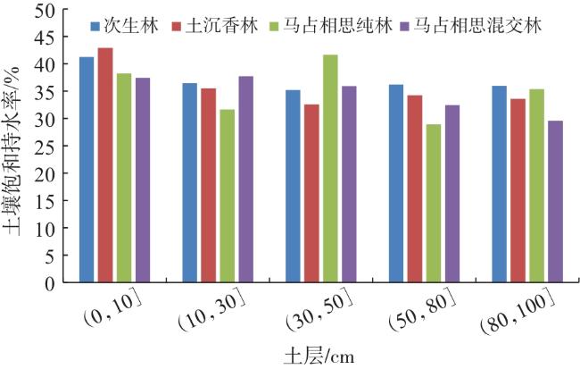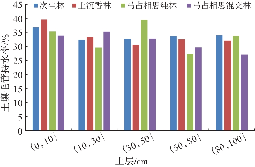 | 林分类型 | 土层厚度/cm | 毛管孔隙度/% | 非毛管孔隙度/% | 总孔隙度/% |