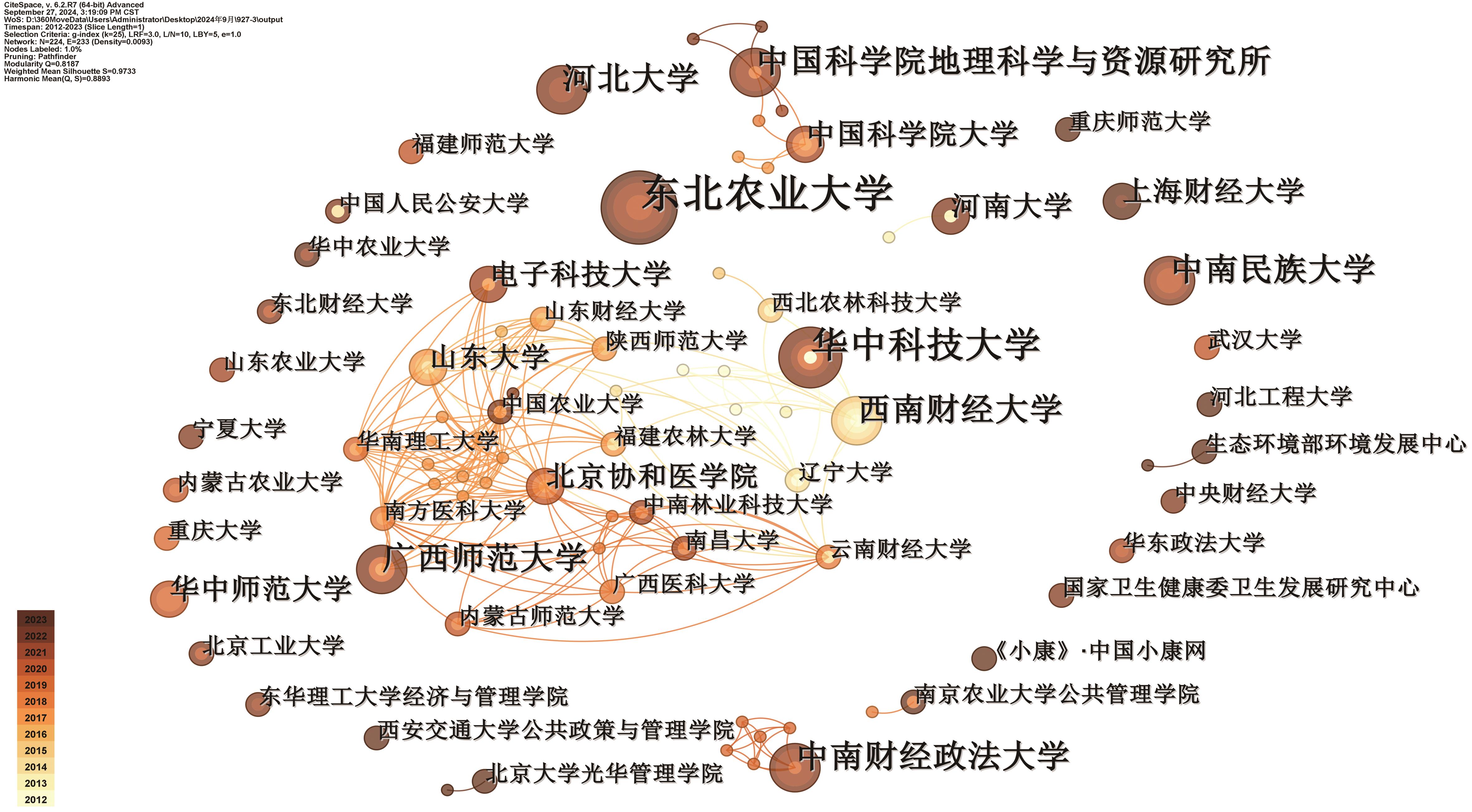 | 序号 | 机构 | 起始 年份 | 发文量/篇 | 合作度 |