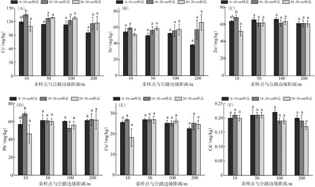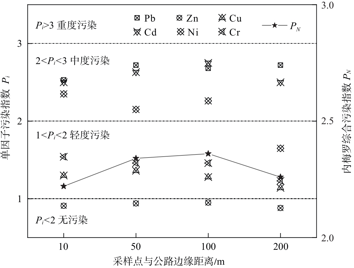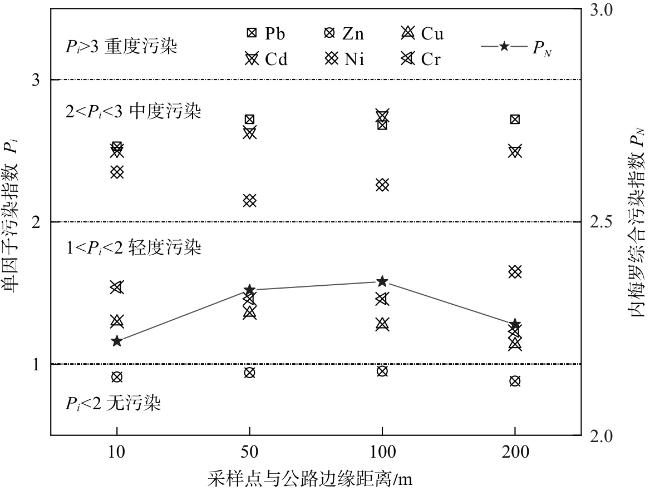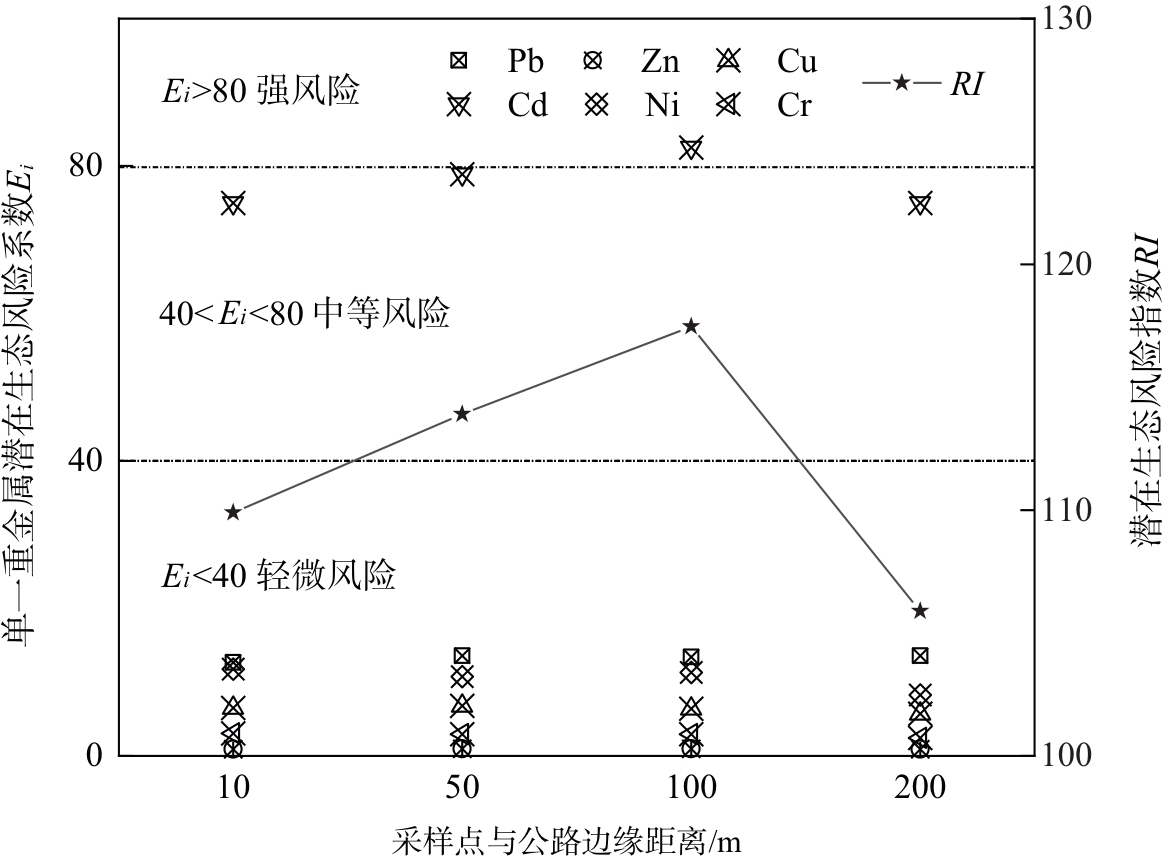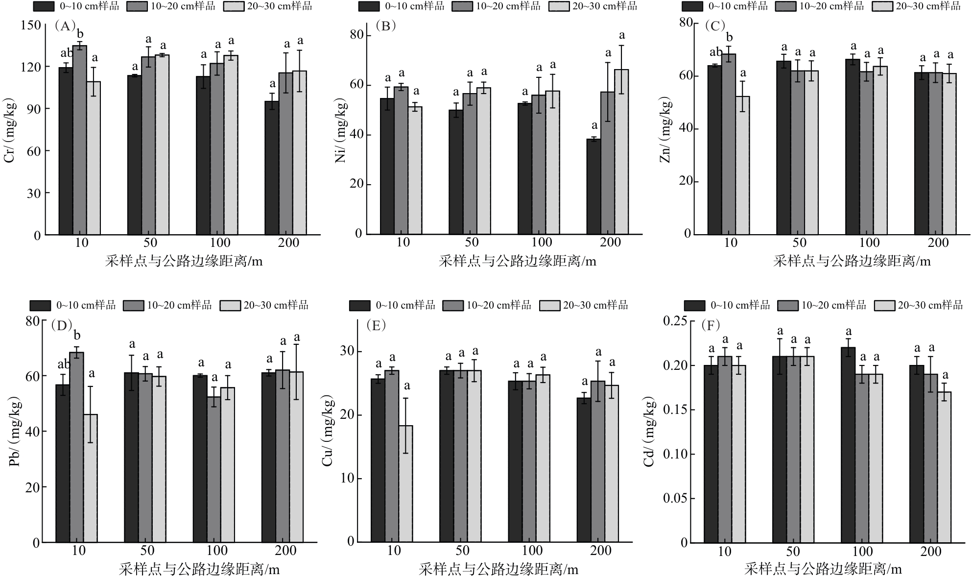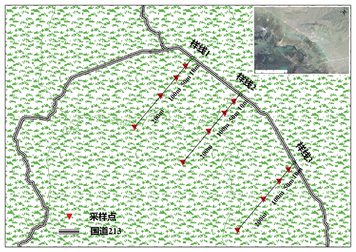 [10]。开展高原路侧土壤重金属研究,对公路沿线草地土壤中重金属的污染状况及其生态风险进行分析和评价,可为高原地区的草原生态保护与科学管理提供重要支撑,对促进高原生态保护与高质量发展具有重要意义。因此,本研究以典型国道沿线草地土壤为研究对象,对土壤中6种重金属(Pb、Zn、Cu、Cd、Ni和Cr)含量进行研究,分析其空间分布特征和规律,评价土壤重金属污染情况和潜在的生态风险。