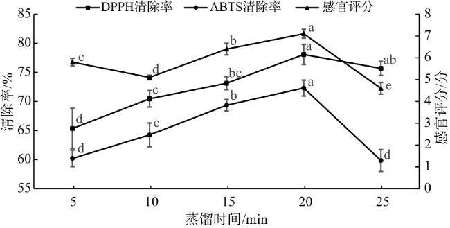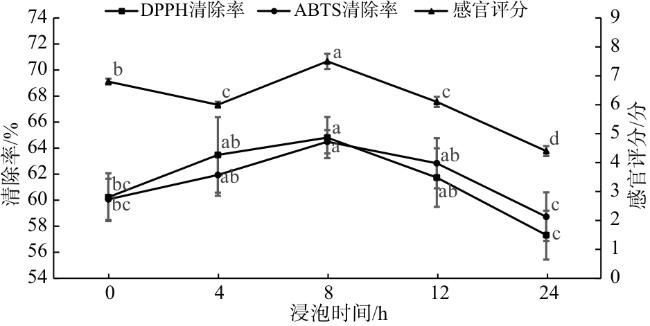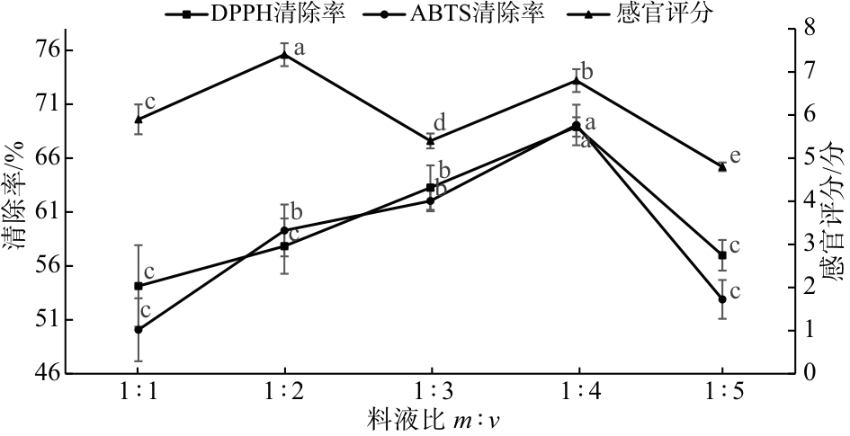 | 测定项目 | 感官评分/分 | DPPH自由基清除率/% | ABTS自由基清除率/% |
