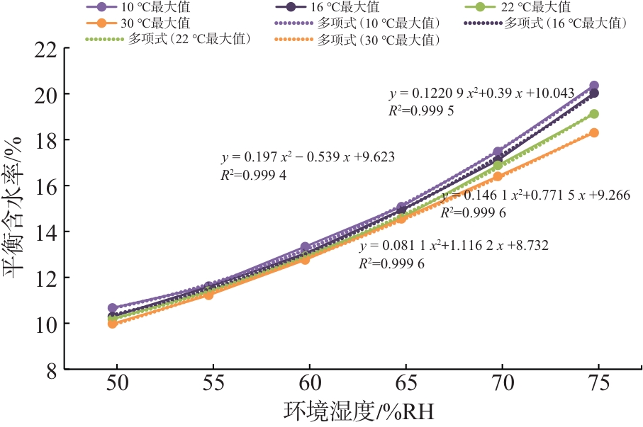 表2 不同温度条件下片烟自然贮存环境的适宜湿度上限对应关系 |