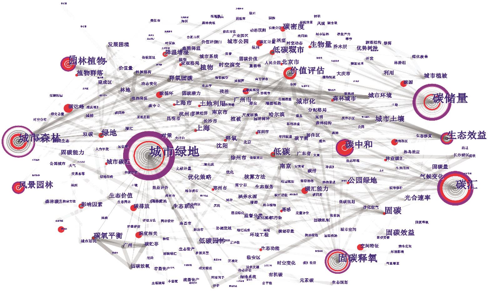 | 城市绿地 | 0.57 | 园林植物 | 0.30 | 碳中和 | 0.14 | ||