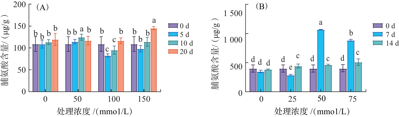 滇杨叶片在土培及水培盐胁迫处理中的脯氨酸含量变化