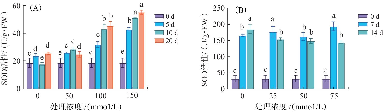 滇杨叶片在土培及水培盐胁迫处理中的SOD活性变化